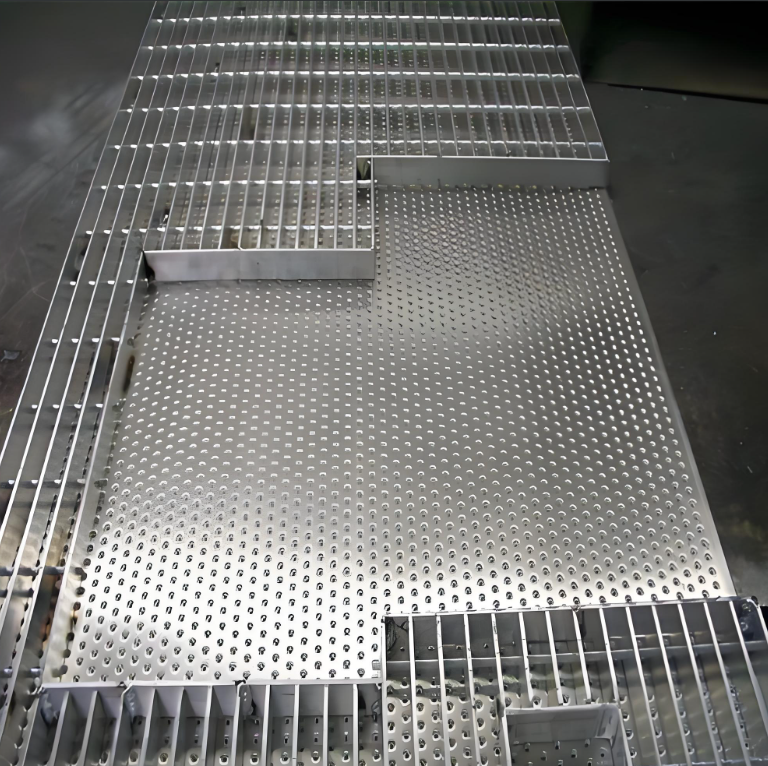 Each bundle of steel grating is securely fastened with rectangular steel frames and wrapped in protective plastic film or strapping. Custom packaging solutions available upon request.